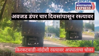 चार दिवसांपासून अवजड डंपर रस्त्यावर उभा;अरुंद रस्ता असल्याने अपघाताचा धोका;किरकटवाडी-नांदोशी रस्त्यावरील बापूजीबुवा नगर परिसरातील स्थिती