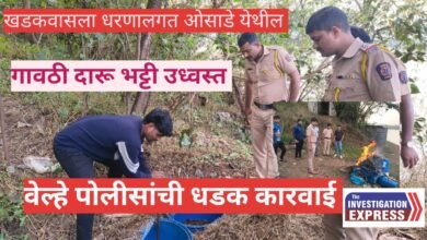 अखेर खडकवासला धरणाला लागून असलेल्या ‘त्या’ गावठी दारू भट्टीवर वेल्हे पोलीसांची धडक कारवाई; हातभट्टीच्या साहित्याची केली होळी;एकावर गुन्हा दाखल