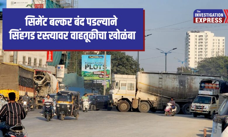 पुणे: सिंहगड रस्त्यावरील नांदेड सिटी गेट जवळ रेडिमिक्स कॉंक्रीट प्लॅंट मधून बाहेर पडलेला बल्कर वळण घेताना मुख्य रस्त्यावर आडवा बंद पडल्याने वाहतूक खोळंबली आहे. घटनास्थळी पुणे शहर वाहतूक विभागाच्या सिंहगड रोड वाहतूक शाखेचे पोलीस कर्मचारी दाखल झाले असून बल्कर बाजूला काढण्यासाठी प्रयत्न सुरू असल्याची माहिती प्रभारी अधिकारी पांडुरंग वाघमारे यांनी दिली आहे.