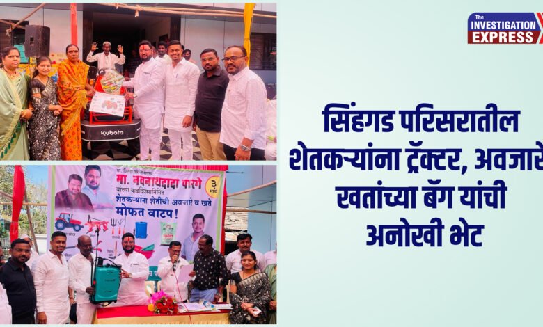 पुणे: सिंहगड परिसरातील शेतकऱ्यांसाठी डोणजे गावच्या सरपंच शितल भामे व ग्रामपंचायत सदस्य योगेश भामे यांनी अनोखा उपक्रम राबवला आहे. माजी जिल्हा परिषद सदस्य नवनाथ पारगे यांच्या वाढदिवसानिमित्त भामे यांच्याकडून मिनी ट्रॅक्टर, पेरणी यंत्र, फवारणी पंप, खतांच्या बॅग व इतर शेतीसाठी लागणाऱ्या अवजारांचे मोफत वाटप करण्यात आले. लाभार्थी शेतकऱ्यांनी सरपंच शितल भामे, योगेश भामे व माजी जिल्हा परिषद सदस्य नवनाथ पारगे यांचे आभार मानत कृतज्ञता व्यक्त केली आहे.