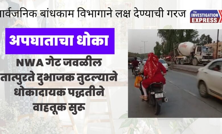 NWA गेट समोरील तात्पुरते दुभाजक पूर्ण तुटले;अपघाताचा धोका असल्याने तातडीने उपाययोजना करण्याची गरज