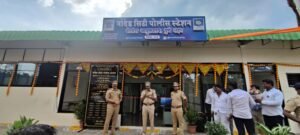 नांदेड सिटी: पुणे शहर पोलीस आयुक्तालयाच्या अंतर्गत नांदेड सिटी येथील पोलीस स्टेशनचे उद्घाटन ऑनलाईन पद्धतीने उपमुख्यमंत्री देवेंद्र फडणवीस, अजित पवार यांच्या हस्ते पार पडल्यानंतर सहाय्यक पोलीस उपनिरीक्षक विजया खुटवड यांच्या हस्ते फीत कापून प्रत्यक्ष उद्घाटन करण्यात आले. सहाय्यक पोलीस आयुक्त अजय परमार व वरिष्ठ पोलीस निरीक्षक राघवेंद्र क्षिरसागर यांनी मनाचा मोठेपणा दाखवत विजया खुटवड यांना हा मान दिला. यावेळी पोलीस अधिकारी व धायरी, खडकवासला, किरकटवाडी, नांदेड, नांदोशी सणसनगर या गावांतील विविध पक्षांचे पदाधिकारी व ग्रामस्थ मोठ्या संख्येने उपस्थित होते.
