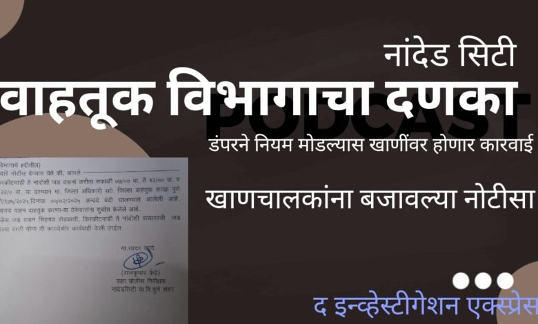 किरकटवाडी: जिल्हाधिकाऱ्यांचा आदेश मोडून किरकटवाडी – नांदोशी रस्त्यावर अवजड वाहतूक सुरू असल्याचे आढळ्यास ज्या खाणीतून संबंधित डंपर भरुन आलेला असेल त्या खाण चालकांवर कायदेशीर कारवाई करण्यात येणार आहे. नांदेड सिटी वाहतूक विभागाने नांदोशी येथील खाणचालकांना याबाबत नोटीसा बजावल्या आहेत.