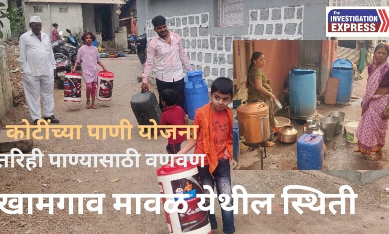 खामगाव मावळ या गावातील आंबरीनाथाचा उत्सव सुरू आहे. गावात नातेवाईक, पाहुणे मंडळी आलेले आहेत मात्र स्थानिक रहिवाशांना उत्सव साजरा करायचे सोडून पाण्यासाठी भटकावे लागत आहे. गावासाठी सुमारे सहा कोटी रुपये खर्चून राष्ट्रीय पेयजल व जल जीवन मिशन अंतर्गत पाणीपुरवठा योजना राबविण्यात आल्या मात्र त्याचा उपयोग नागरिकांना झाला नाही. या योजनांचा निधी संबंधित ठेकेदार, अधिकारी व काही लोकप्रतिनिधींनी मिळून लाटल्याचा गंभीर आरोप नागरिक करत आहेत. तसेच याबाबत सखोल चौकशी करण्याची मागणी नागरिक करत आहेत.