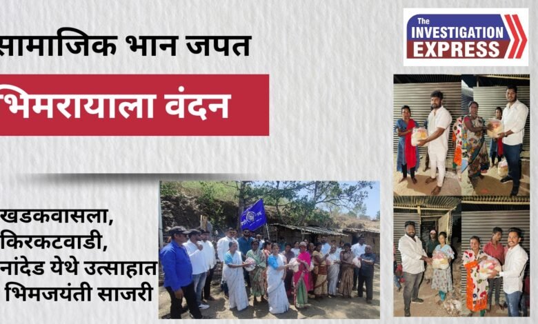 खडकवासला: महामानव, भारतरत्न डॉ बाबासाहेब आंबेडकर यांच्या जयंतीनिमित्त खडकवासला, जयप्रकाश नारायण नगर नांदेड व किरकटवाडी येथील भिमसैनिकांनी सामाजिक भान जपत भिमरायाला अभिवादन केले. परिसरातील आदिवासी कातकरी कुटुंबांना किराणा मालाचे किट वाटून अनोख्या पद्धतीने भिमजयंती साजरी करण्यात आली. नांदेड सिटी पोलीस स्टेशनचे वरिष्ठ पोलीस निरीक्षक अतुल भोस यांच्या आवाहनानुसार नांदेड येथील मंडळाने 100 पुस्तके वाटून भिमजयंती साजरी केली.