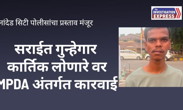 MPDA Act: सराईत गुन्हेगार कार्तिक लोणारे याच्यावर MPDA कायद्यानुसार स्थानबद्धतेची कारवाई; नांदेड सिटी पोलीस स्टेशनच्या प्रस्तावाला पोलीस आयुक्त अमितेश कुमार यांची मंजुरी
