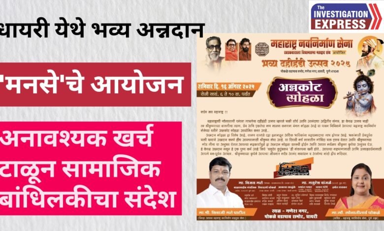 Social Dahi Handi:धायरीत दहीहंडी निमित्त भव्य अन्नदान सोहळ्याचे आयोजन; अनावश्यक खर्च टाळत मनसे’कडून सामाजिक बांधिलकीचा संदेश