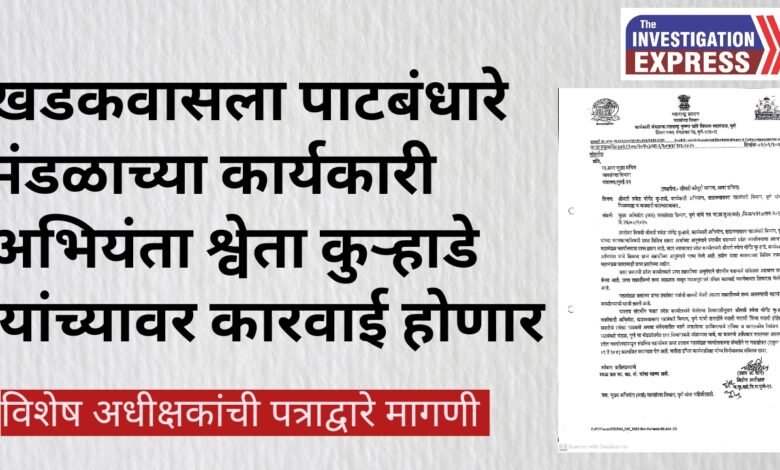 अखेर दणका…. खडकवासला पाटबंधारे मंडळाच्या कार्यकारी अभियंता श्वेता कुऱ्हाडे यांच्या विरोधात ‘तक्रारींचा पाऊस’ नियमबाह्य व मनमानी कारभारार असल्याचे चौकशीतून निष्पन्न; बदली, सक्तीची रजा किंवा पदभार काढून घ्या; कृष्णा खोरे विकास महामंडळाच्या विशेष अधीक्षकांचे शासनाला अहवालासह पत्र