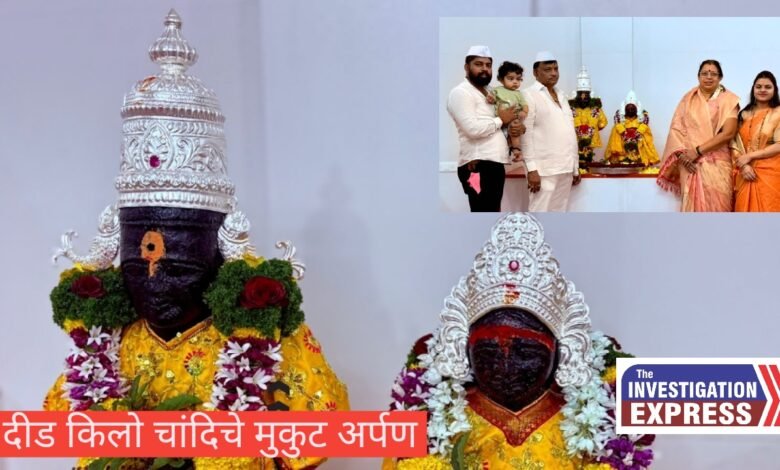 नांदोशी येथील उद्योजक नवनाथ घुले यांच्याकडून सणसनगर येथील विठ्ठल-रुक्मिणी मातेस दीड किलो चांदिचे मुकुट अर्पण;टाळ- मृदंगाच्या गजरात पार पडला सोहळा