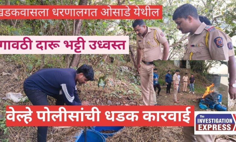ओसाडे येथे मूनवेक हॉटेल च्या मागच्या बाजूला खडकवासला धरणाच्या पाण्यालगत गावठी दारूची भट्टी सुरू होती. द इन्व्हेस्टीगेशन एक्स्प्रेस’ने याबाबत सातत्याने पोलीस प्रशासनाचे लक्ष वेधून कारवाई करण्याची मागणी केली होती. यापुर्वीही याच ठिकाणी तब्बल आठ हजार लिटर कच्चे रसायन नष्ट करण्यात आले होते. त्यामुळे सदर भट्टी चालक कायद्याला आणि पोलीसांना जुमानत नसल्याचे दिसून येत आहे. वेल्हे पोलीसांच्या पथकाने आता पुन्हा कारवाई करत मुद्देमाल नष्ट केला आहे.